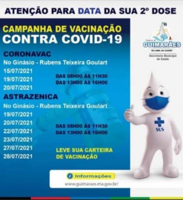 Confira o Calendário da 2ª dose em Guimarães