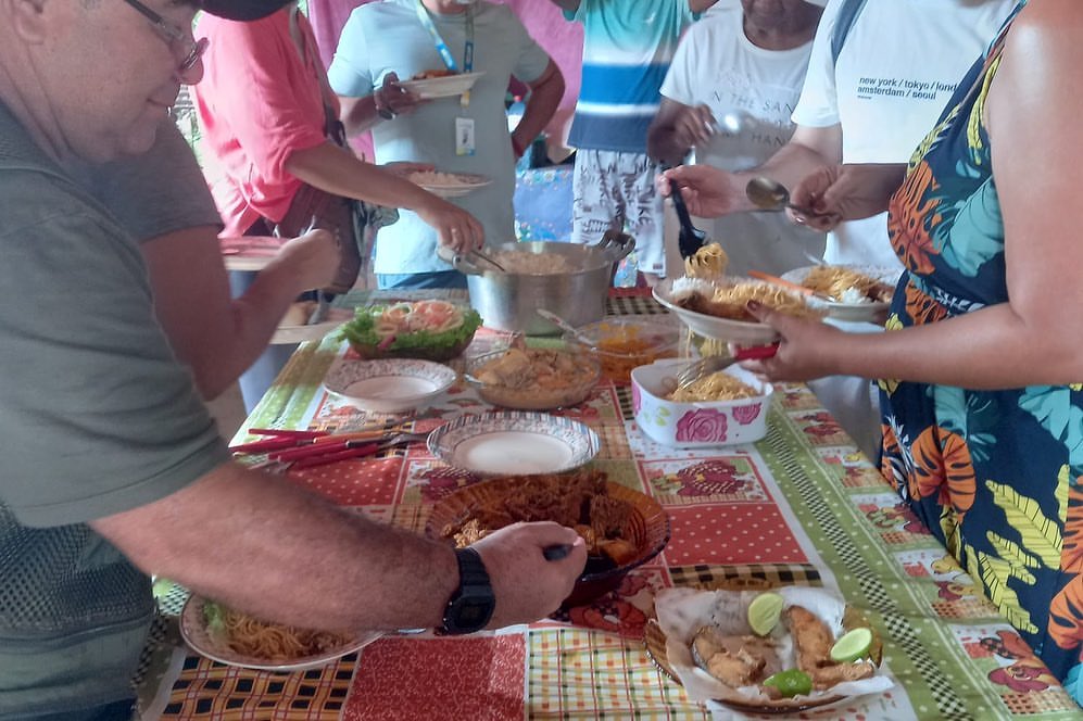 A parada para almoço foi oportunidade de boas conversas com as mulheres que coordenam a Casa da Comunidade de Damásio, que prepararam um cardápio variado com delícias de culinária regional. Nesse espaço também funciona a biblioteca comunitária de Damásio.